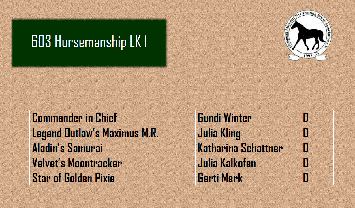 - Horsemanship LK 1, 3-Gait, Nr. 603