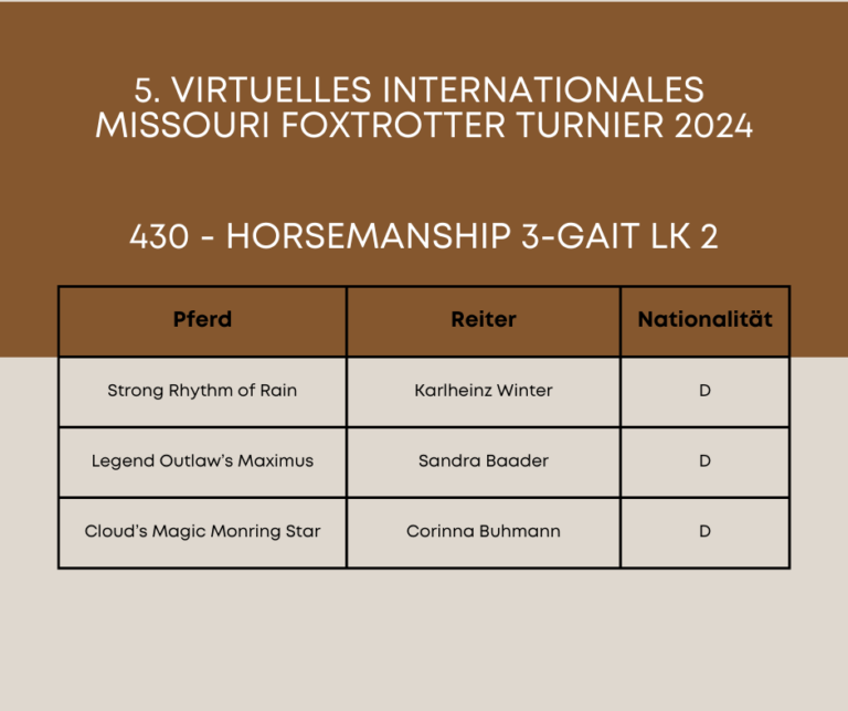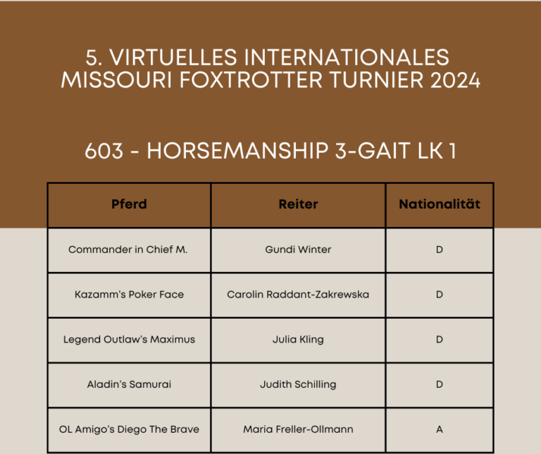 5. Virtuelles Internationales Missouri Foxtrotter Turnier 2024
